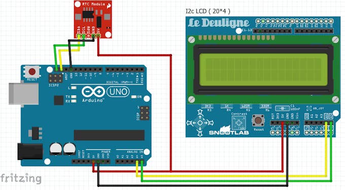 This clock will be able to collect time data from a RTC Clock and to display them on a LCD.